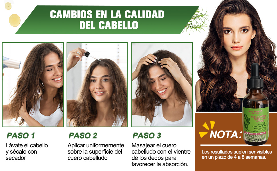Diferencial: Fórmula enriquecida con aceites esenciales de romero y menta, además de biotina, para potenciar el crecimiento y fortalecimiento del cabello.
